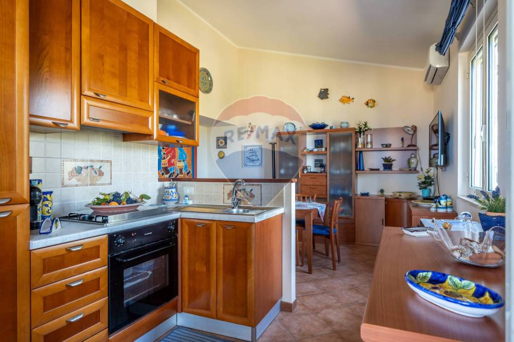 Nella splendida cornice della costa siciliana e precisamente tra Trabia e San Nicola LArena e precisamente in Contrada Sant'Onofrio, all'interno dell'elegante Residence Acquamarina, proponiamo la vendita di una interessante porzione di villa di mq.60 con corte esclusiva di circa mq.700 ben curata. La proprietà è così distribuita: dal cancello di accesso alla corte esclusiva si arriva alla scala che ci porta all'ampio terrazzo coperto dove troviamo l'ingresso dell'abitazione, qui ci accoglie una cucina a vista con comodo living, un piccolo disimpegno ci conduce alla zona notte composta da due camere servite da un servizio con doccia finestrato. L'ampia terrazza coperta consente di godere di panorami suggestivi e mozzafiato, dai caldi tramonti estivi alla vista delle isole eolie. Il meraviglioso giardino curato e terrazzato di circa 700 mq. regala piacevoli momenti di relax e consente anche linstallazione di una piscina fuori terra ad uso esclusivo. La proprietà è dotata di caldaia a gas per l'acqua sanitaria e per la cucina, infissi interni in pvc con vetrocamera, zanzariere, persiane esterne in pvc, ripostigli soppalcati, climatizzatori, arredi esterni sia per il terrazzo coperto che per il giardino ed infine funzionali ripostigli adiacenti al terrazzo. La villetta sarà venduta totalmente arredata pertanto sarà possibile utilizzarla immediatamente. Per ogni villetta è riservato un posto auto davanti all'accesso della villa plurifamiliare. Il residence Acquamarina si trova a circa 1,5 km. dal mare, è dotato di due ingressi, un lido a mare esclusivo per i residenti, un servizio gratuito di navetta per il periodo estivo, piscine per adulti e bambini, campo di calcetto, bar e animazione estiva . Per ulteriori informazioni o per pianificare una visita, vi chiediamo di contattarci.