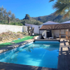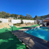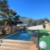 La villa è caratterizzata sia dalla presenza di una zona pavimentata dedicata al parcheggio sia di garage, con riposto all'interno, piscina e bagno esterno.