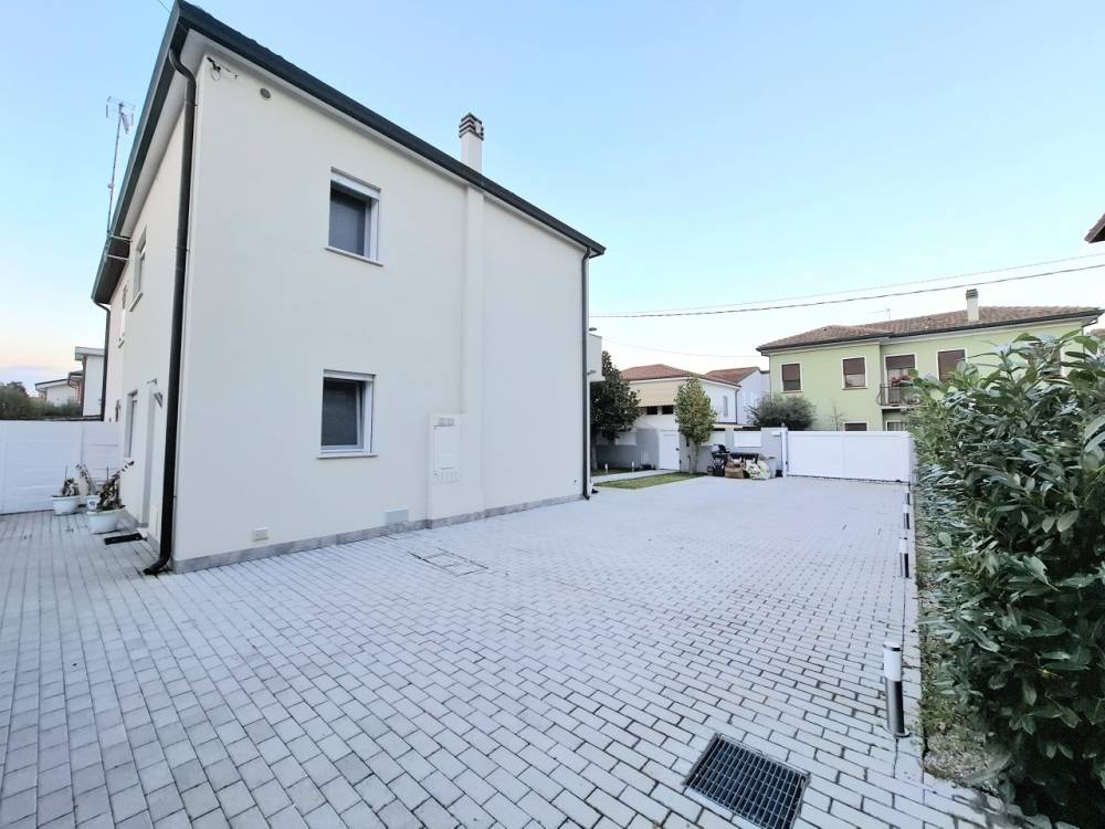 A Rovigo in quartiere Tassina, graziosa porzione di bifamiliare completamente ristrutturata, con grande scoperto privato piantumato, garage, cantina e tettoia di 20 mq, composta da ingresso, ampio e luminoso soggiorno con cucina, 2 bagni, 2 camere da letto, ripostiglio e balcone. Caratterizzano l' abitazione le finiture di pregio e l' alto risparmio energetico, gode di riscaldamento a pavimento, climatizzatore, caldaia a condensazione, cappotto termico esterno da 12 cm, fotovoltaico da 3,6 kw, infissi con vetrocamera e tapparelle in alluminio coibentate, videocitofono, predisposizione per allarme e colonnina di ricarica, tetto con guaina coibentato. Immobile visibile previo appuntamento.