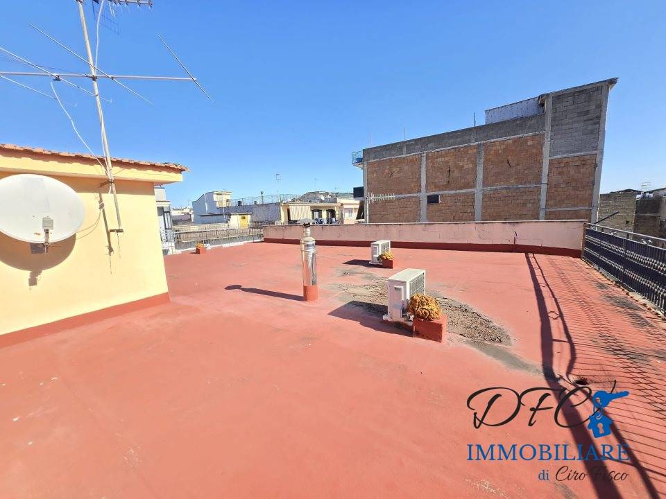 Afragola: Zona Campo Moccia, la DFC Immobiliare di Ciro Fisco Propone in Vendita un appartamento completamente ristrutturato di 110MQ interni con Lastrico Solare di circa 130MQ.nL' immobile è situato al primo ed ultimo piano ed è composto da: ingresso in ampia cucina living con camino e lavanderia, disimpegno, camera da letto con bagno e cabina armadio, cameretta e bagno padronale.nLa casa risulta essere luminosissima grazie al duplice affaccio. nnN.B. C'è inoltre la possibilità di acquistare anche un 1/3 di Cantinato di oltre 150MQ e Diritto di cortile per posto auto con una cifra aggiuntiva.n - Maggiori Dettagli: Porta blindata