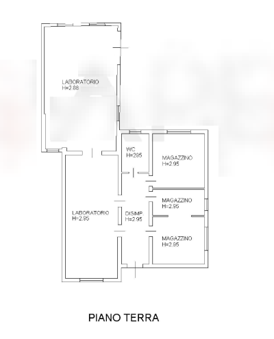Al pano terra troviamo un laboratorio/magazzino con locali accessori, per una