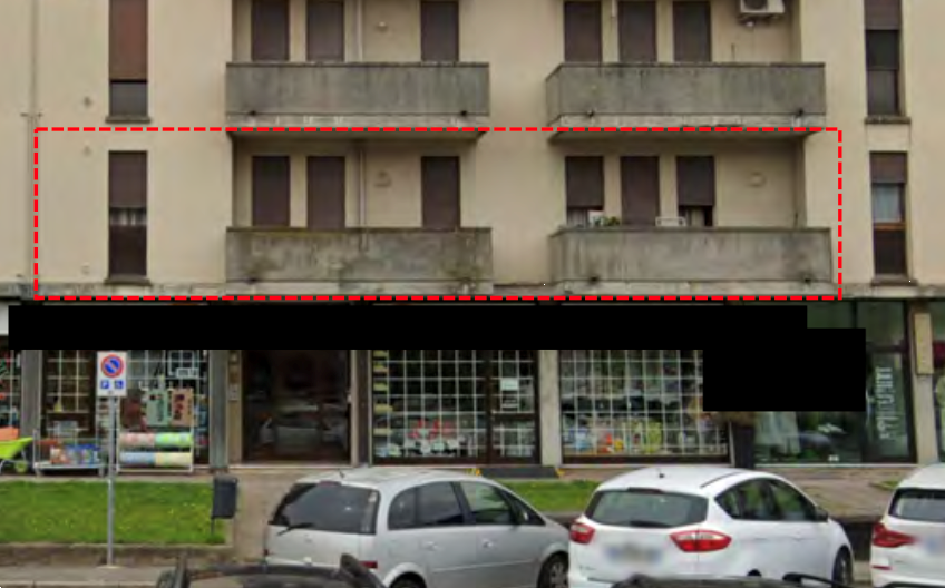 Appartamento al piano primo con garage al piano interrato in contesto condominiale con ascensore situato a Grisignano di Zocco (VI) in via Giuseppe Mazzini, composto da un ingresso, soggiorno, una cucina, disimpegno, due camere da letto, un bagno e due terrazzi.
