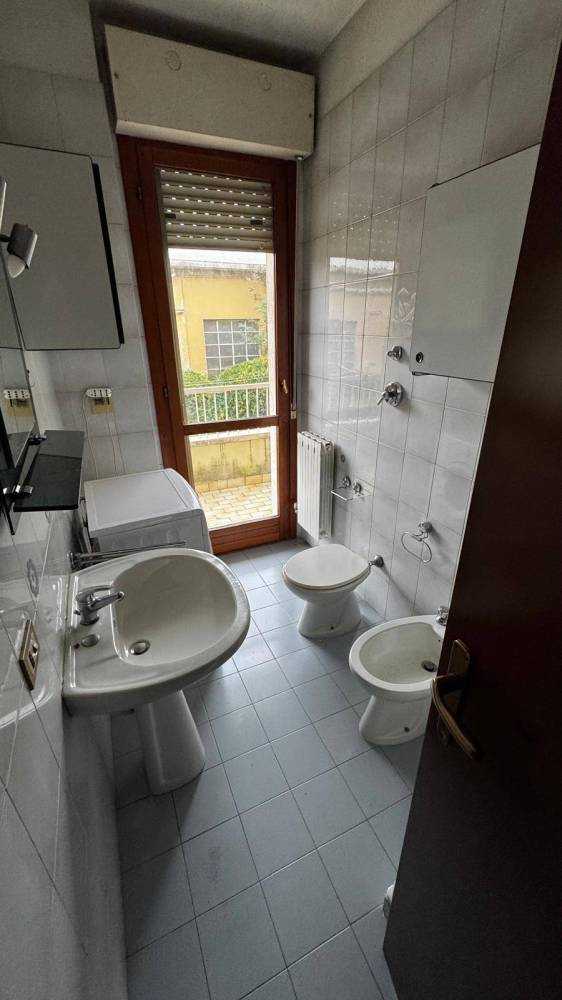 L'appartamento, al primo piano con ascensore è composto da: ingresso su disimpegno, sala con cucina e balcone verandato, camera matrimoniale e bagno con balcone.