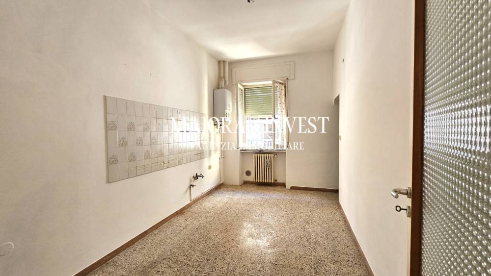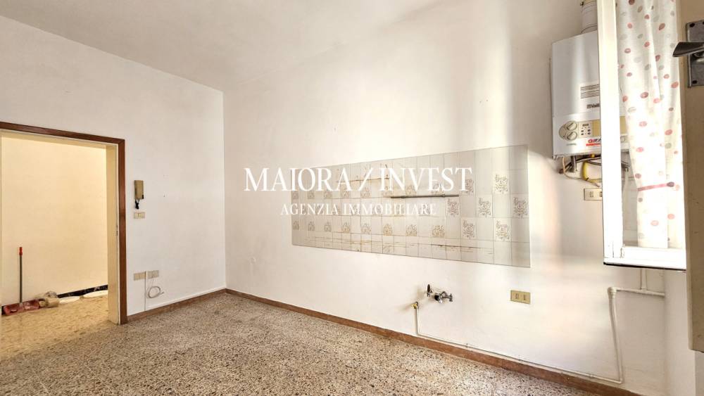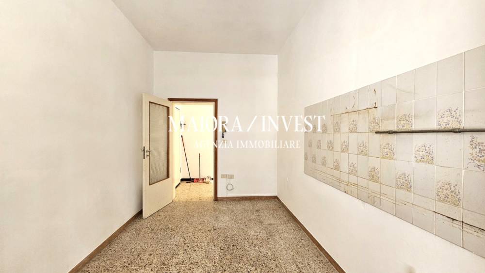 SAN BENEDETTO DEL TRONTO - In ottima posizione servita, in traversa di Viale de Gasperi, a circa 400 metri dalla spiaggia e dall'Isola pedonale, ampio appartamento di circa 100 mq posto al terzo piano di piccola palazzina provvista di ascensore. L'immobile è composto da ingresso, cucina abitabile con retrocucina/ripostiglio, soggiorno, due ampie camere matrimoniali, un bagno finestrato con doccia e un balcone con uscita da una delle camere. Completano la proprietà una porzione di soffitta sovrastante l'immobile di circa 60 mq con altezza massima 1.63 e una corte esterna condominiale con deposito bici. L'immobile con esposizione sud est gode di un'ottima luce e dispone di finiture dell'epoca costruttiva. Codice di riferimento 1492. Agenzia Immobiliare MAIORA/INVEST.