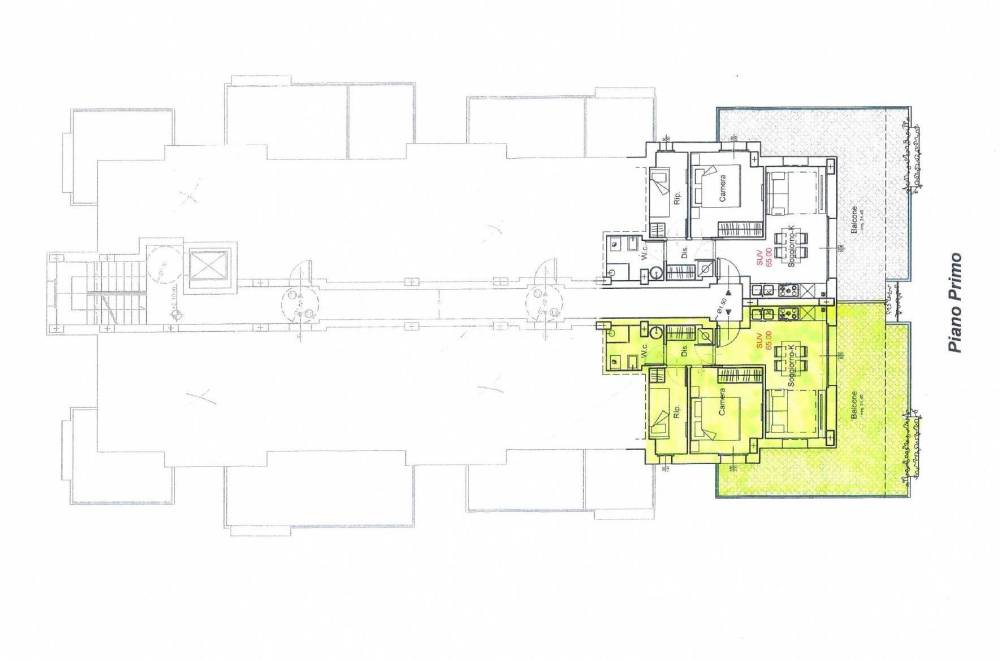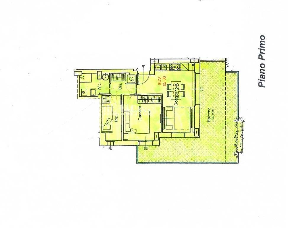 Appartamento al piano primo con ascensore: superficie di mq 65 suddivisi nel seguente modo: ingresso su soggiorno con angolo cottura, una camera da letto matrimoniale, una cameretta, disimpegno con angolo lavanderia, un bagno con doccia, terrazzo perimetrale per complessivi mq 31,40. Bellsisima vista mare. Esposizione sud - est.