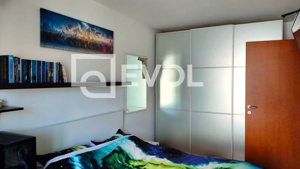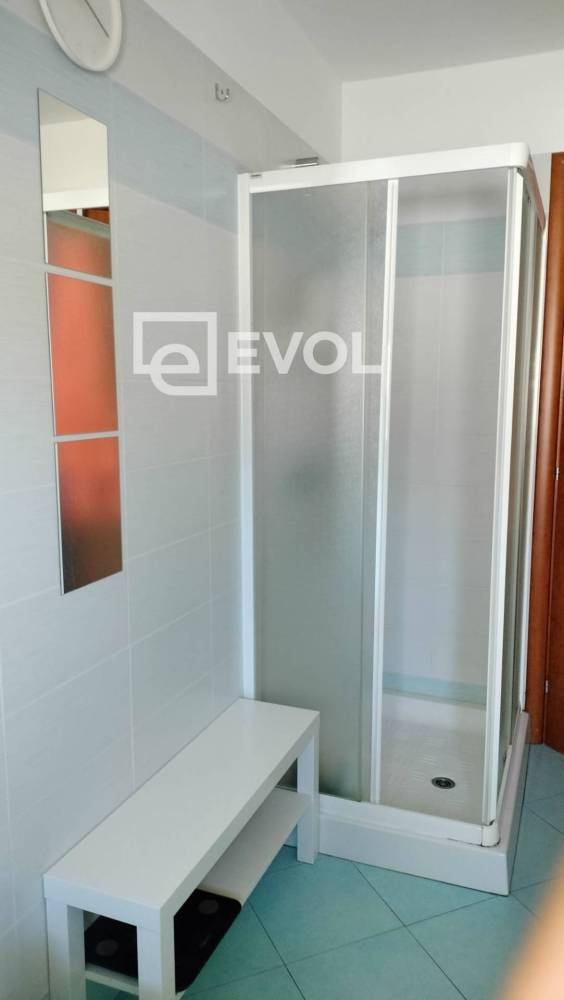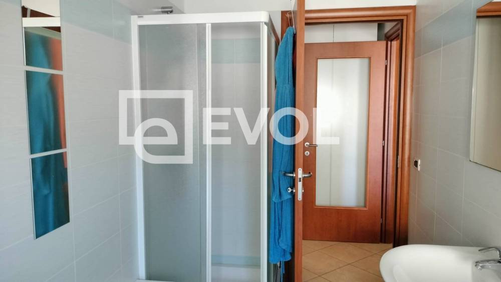 Entrando nella zona notte, ben separata da un pratico disimpegno dotato di armadio a muro, troviamo un' ampia camera matrimoniale e un bagno finestrato con doccia. L'appartamento è dotato di impianto di climatizzazione con due split, uno nella zona giorno e uno nella zona notte.