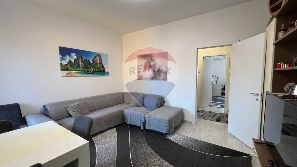 A seguire troviamo il soggiorno con balconcino arredato con affaccio sul cortile ed un cucinotto completamente attrezzato e arredato modernamente.