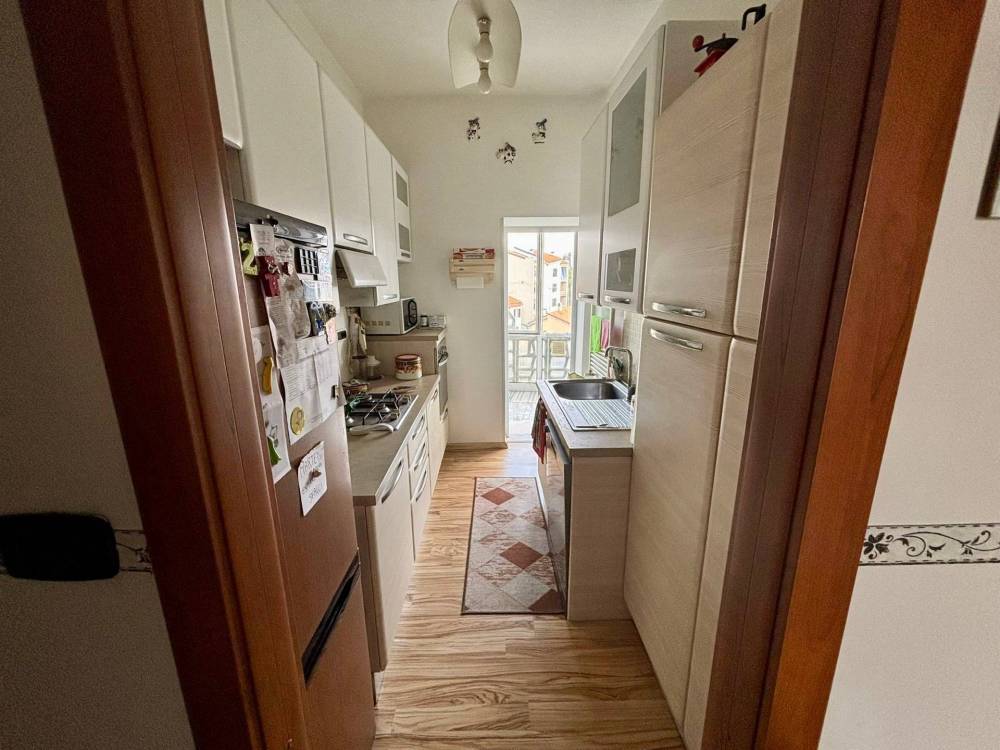 La cucina funzionale e pratica dotata di balcone verandato, il soggiorno, luminoso e confortevole, si presta perfettamente come zona relax o elegante area living con terrazzo profondo e conviviale.