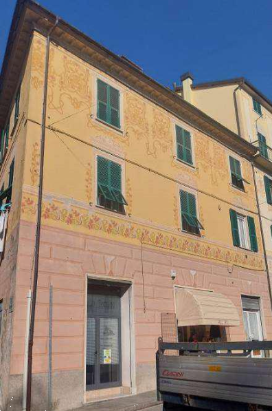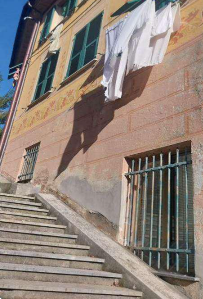 L'immobile, un appartamento posto al terzo piano fuori terra(secondo) di una piccola palazzina costituita da piano strada, primo,secondo e sottotetto è composto da ingresso "alla genovese" da cui si accede a ponente a un piccolo servizio igienico e a una stanza prospiciente via privata Cacciatori , dalla parte opposta ad altra stanza prospettante su sottostante corte e frontalmente a un disimpegno che conduce ad altre tre stanze.