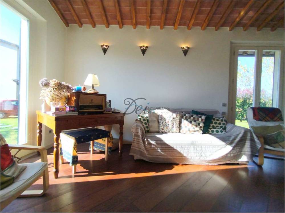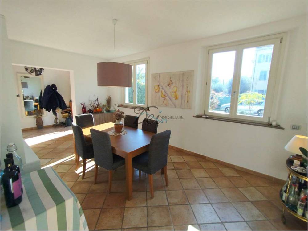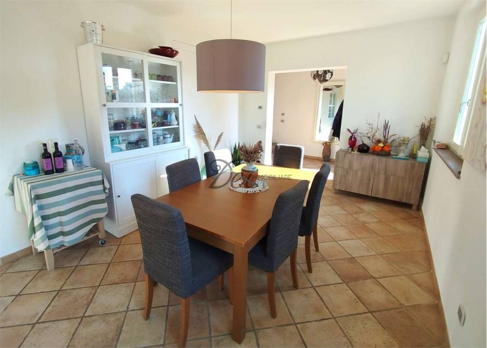 Ingresso, ampio e luminoso soggiorno, sala da pranzo con camino, cucina abitabile con accesso diretto al giardino e bagno finestrato con doccia.