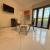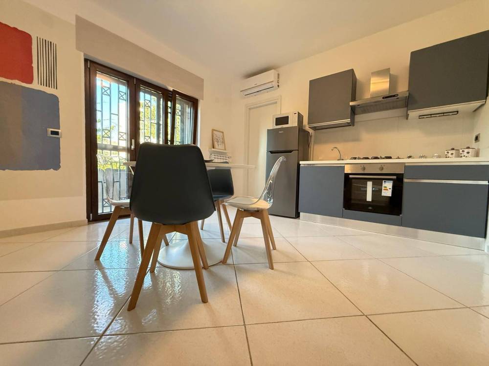 Luminoso salone con angolo cottura completo di elettrodomestici,