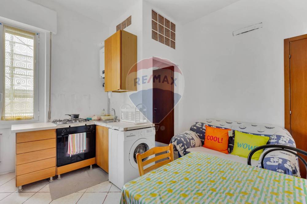 L'appartamento espone, appunto, verso il cortile interno, in un contesto di ringhiera; l'ingresso è sul soggiorno con angolo cottura a vista, sulla sinistra troviamo poi l'ampia camera da letto ed il bagno finestrato. Dispone di riscaldamento autonomo con caldaia sostituita di recente e predisposizione per aria condizionata in entrambi gli ambienti, è fornita di serramenti a doppio vetro e comprende una cantina di proprietà; l'immobile è in buone condizioni, attualmente è locato con un contratto 4+4 ed un rendimento del 5% annuo.