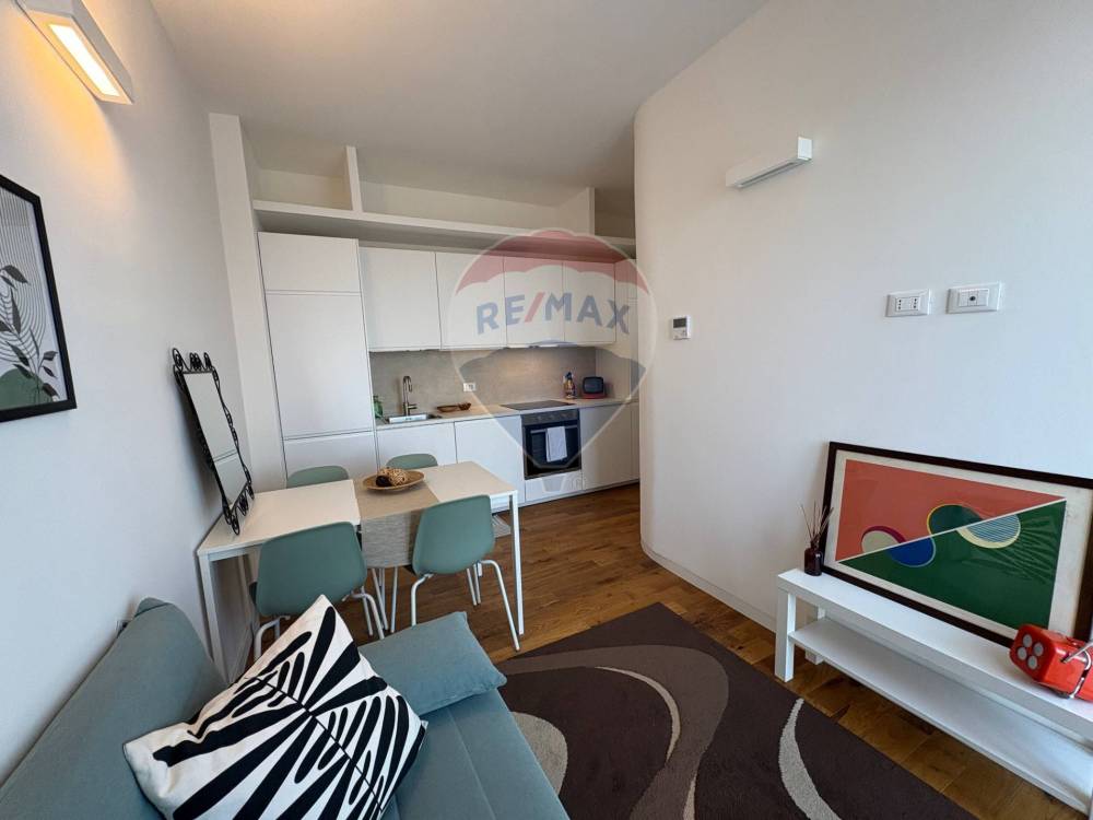 La zona giorno è caratterizzata da una moderna cucina a vista, completamente attrezzata e da un accogliente soggiorno con accesso al balcone che regala una piacevole vista panoramica sul quartiere.