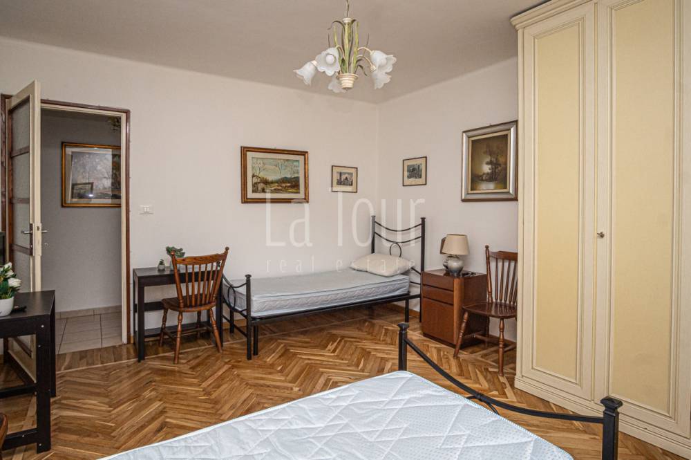 In uno degli edifici più noti e particolari della città, denominato "Condominio Astrum" (Palazzo Stella) per la sua conformazione a quattro "punte" progettata negli anni '50 dallo studio del famoso architetto milanese Giò Ponti, con un vano scale centrale molto importante a servire le abitazioni sviluppate nelle "punte" della stella, proponiamo un trilocale accogliente, di recente parziale ristrutturazione (serramenti, bagno, impianti), in parte arredato. L'appartamento si trova al secondo piano, ovviamente servito da ascensore, ed è composto da un ingresso-corridoio dal quale si accede, in batteria, alla cucina abitabile con balcone, al luminoso salotto centrale, ed infine alla camera da letto con terrazzino e con accanto il bagno dotato di finestra; la proprietà comprende un pratico vano cantina, al piano sotterraneo. La tipologia dell'edificio ed anche dell'appartamento, dotato di finestre particolarmente ampie che consentono un'ottima luminosità degli ambienti, e con alcuni materiali di finitura d'epoca perfettamente conservati (pavimenti in legno posato a spina di pesce nelle camere e graniglia in cucina), spiccatamente personali, conferiscono un carattere particolare e unico a questo alloggio situato in posizione veramente comoda, a pochi passi dal centro storico e dall'ospedale regionale, e con molti negozi e servizi a portata di mano.