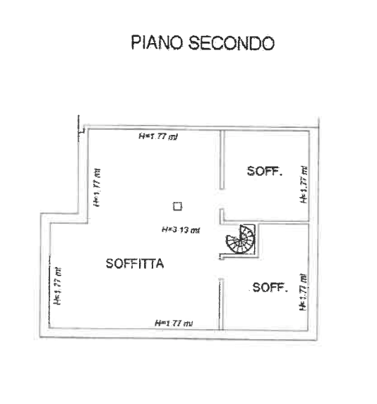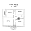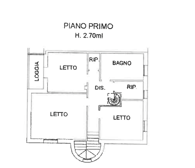 -piano primo con disimpegno, bagno, tre camere, ripostigli, scala interna di collegamento al sottotetto e loggia;