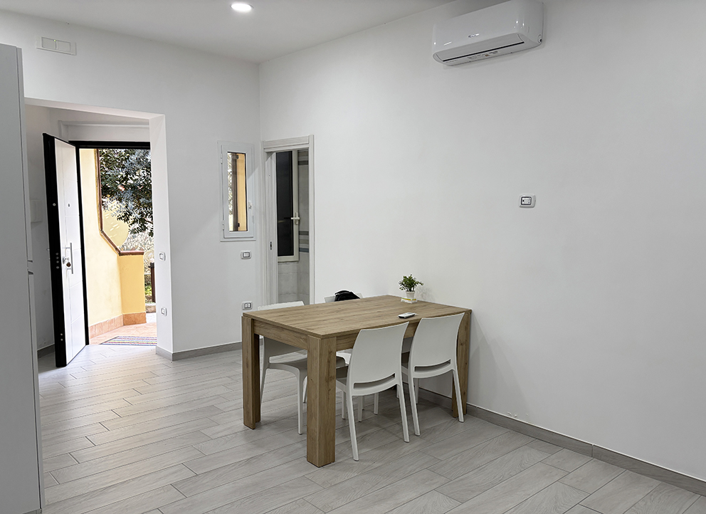 L’appartamento, situato al piano terra, gode di un’ottima esposizione ed è molto luminoso e soleggiato; è nuovo, finemente ristrutturato ed è munito Porta blindata, Napoletane in ferro zincato, Infissi in doppio vetro camera in alluminio, Porte interne a scrigno e a battente, Controsoffittatura con faretti ad incasso a risparmio energetico, Condizionatori a pompa di calore per aria calda e fredda, Boiler (scaldabagno ad accumulo) per acqua calda, Wi-Fi.