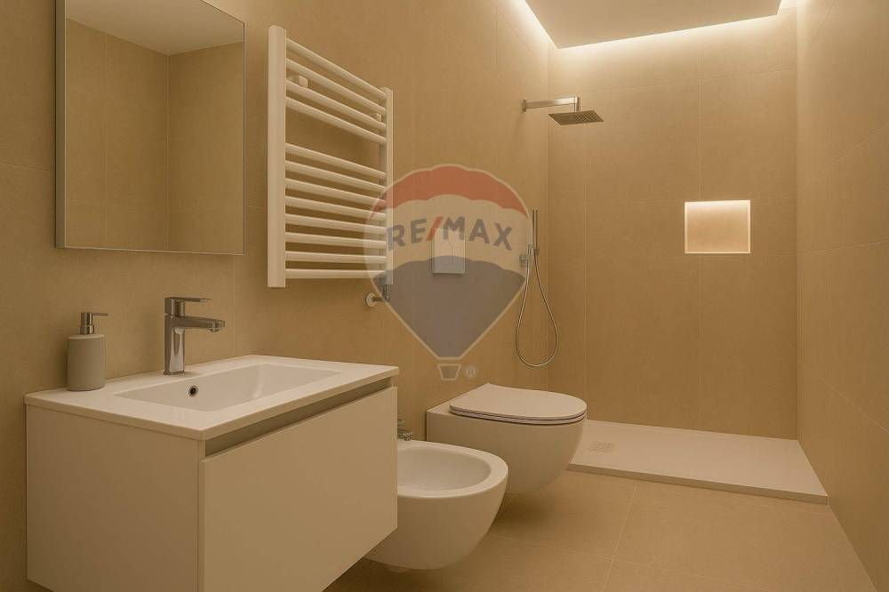 Tra le rifiniture troviamo: porta blindata, pavimentazione in parquet, tranne per il bagno dove troviamo un rafinatissimo gress porcellanato, raffrescamento e riscaldamento canalizzato alimentato da energia elettrica, porte a scrigno, doppi infissi in vetrocamera scorrevoli ad alta efficenza termica, tapparelle motorizzate e sanitari sospesi.