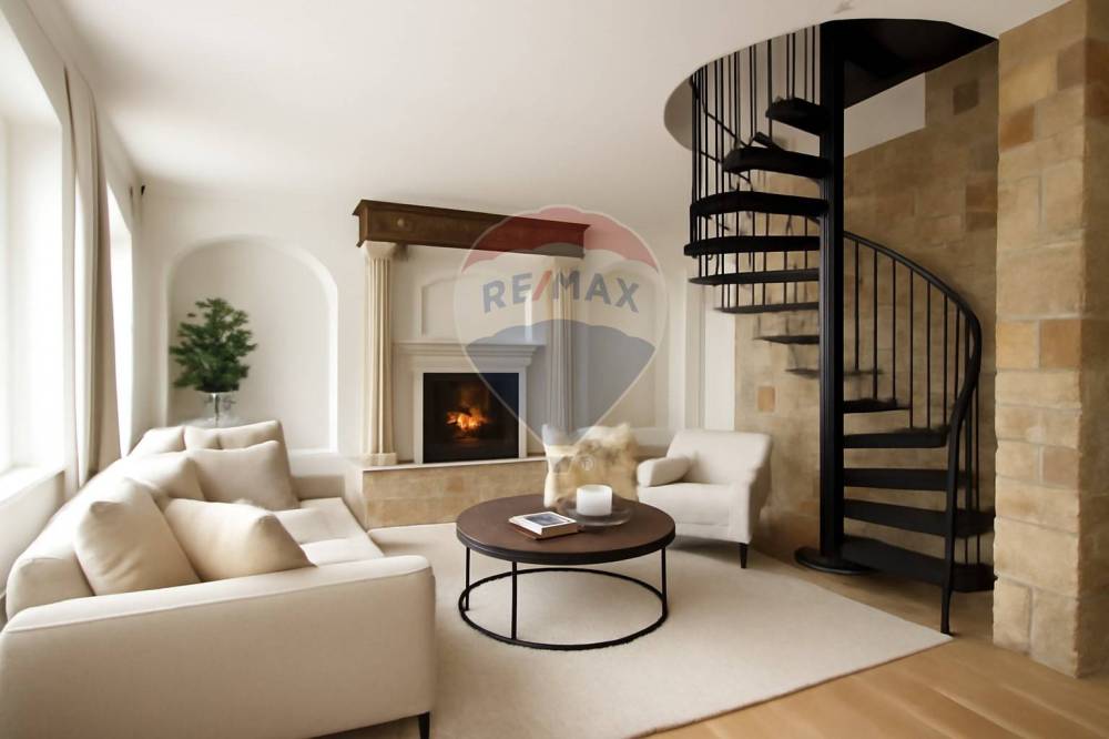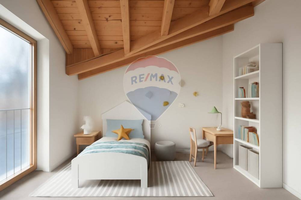 Una scala impreziosita da parete in pietra conduce al secondo e ultimo piano, dove la zona notte si sviluppa con una camera con bagno privato, uno studio con ripostigli e unulteriore camera da letto con cabina armadio. Gli ambienti sono caratterizzati da travi a vista, che conferiscono calore e charme agli spazi.