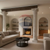 Al piano terra, un elegante ingresso introduce nellampio soggiorno, reso particolarmente accogliente dal camino con rivestimento in marmo e dalle ampie vetrate che donano luce naturale e accesso diretto al giardino privato.