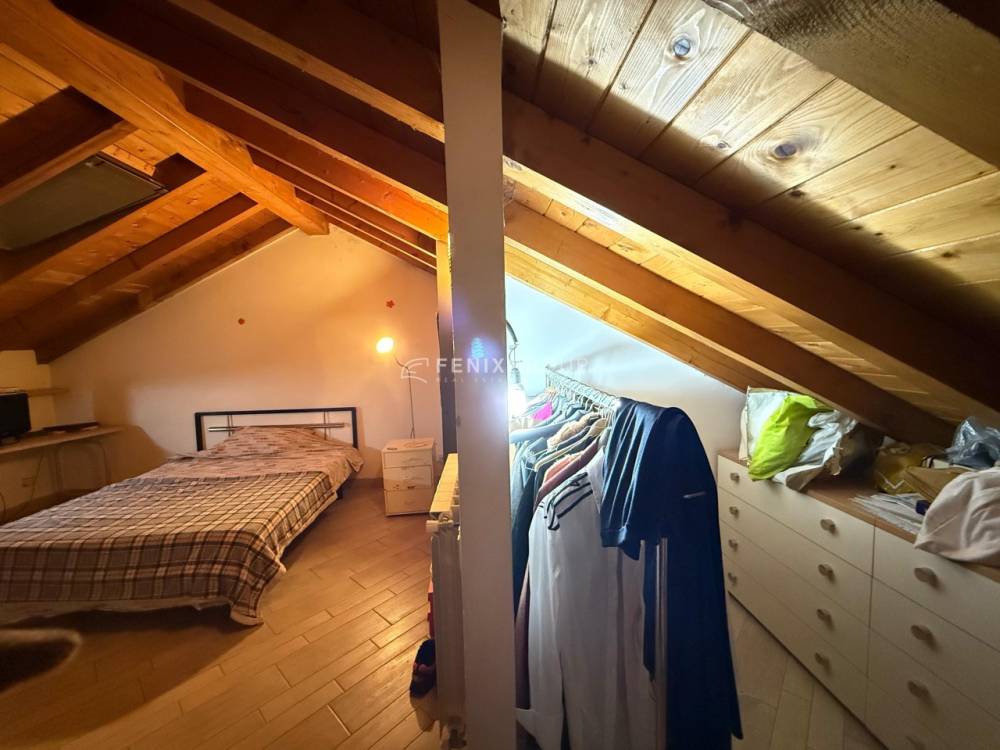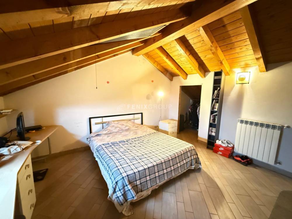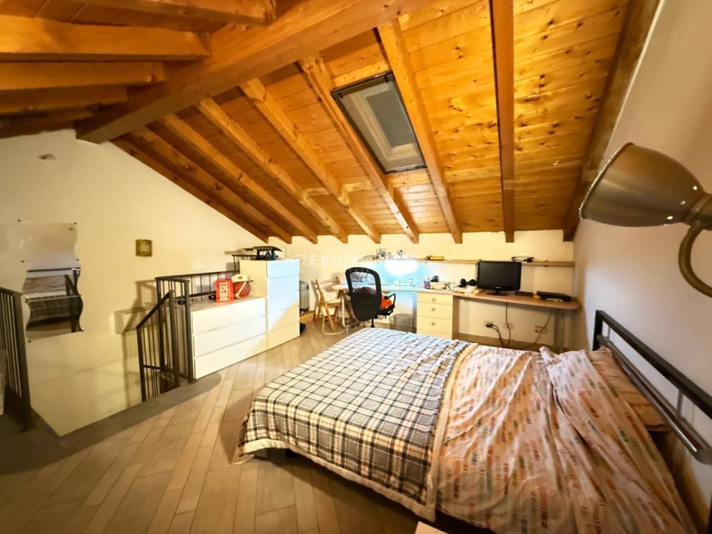 Secondo piano: camera da letto con zona studio e cassettiera, predisposizione per secondo bagno, due finestre Velux con telecomando.
