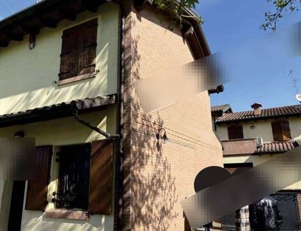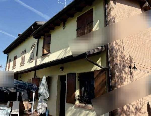 Trattasi di abitazione disposta al piano terra e primo con annessa autorimessa, posto auto e area cortiliva esclusiva, il tutto sito in Comune di Cento (FE), via Dogana. L'immobile è composto da ingresso/soggiorno, con cucina a vista, bagno, e vano scala. Al piano primo è composta da bagno, num. due camere da letto, ed un guardaroba. La superficie del posto auto è di mq. 14,00 mentre quella del garage è di mq. 11.