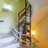 Attraverso la scala interna, illuminata da inserti in vetrocemento, si raggiunge il piano principale, dove i giochi di luce naturale incontrano il calore del soggiorno doppio con camino e lo spazioso balcone affacciato sul verde.