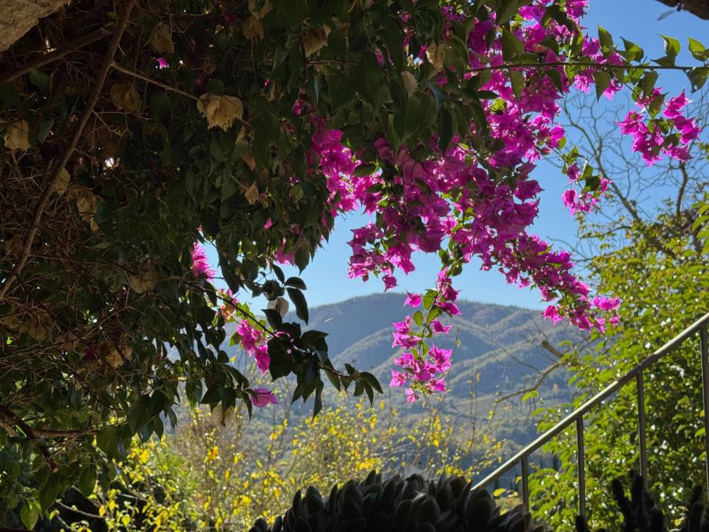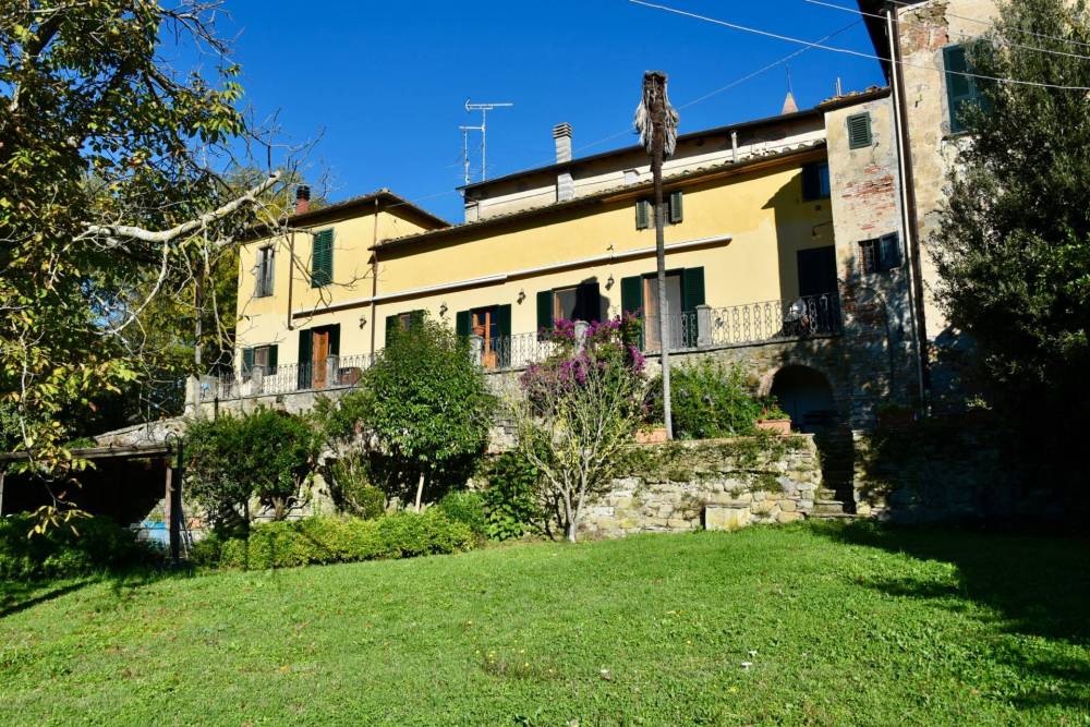Dalla terrazza, una scala in pietra conduce al giardino privato di circa 600 mq, dove il paesaggio toscano diventa un quadro vivente, tra profumi di erbe spontanee e orizzonti di vigna e ulivo.