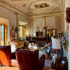 Il salone principale di circa 40 mq, con i suoi soffitti affrescati e la terrazza panoramica, invita lo sguardo a perdersi tra i profili morbidi delle colline.