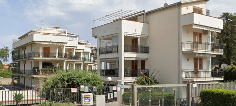 Appartamento a P. 1, Sc. D, int. 3, composto da soggiorno con a.c., due vani e bagno, oltre terrazzo e balcone, di complessivi mq. lordi 90,20 circa e due autorimesse a P. 1S, ciascuna di un unico vano di mq. 15 circa.