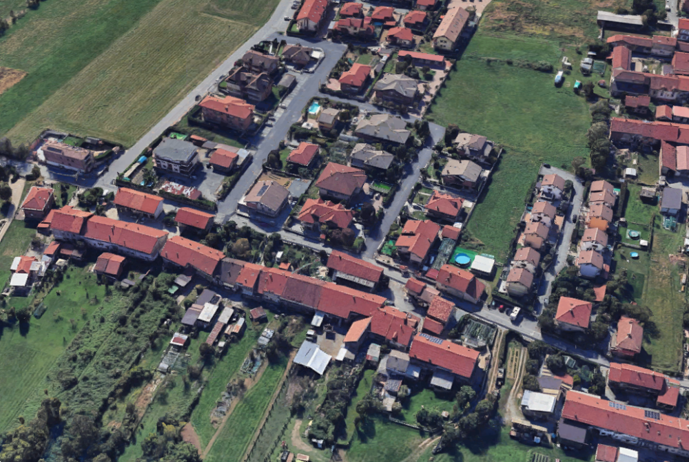 Appartamenti a San Francesco al Campo (TO) in via Bruna al piano terreno (primo piano fuori terra) unità immobiliare composta da quattro vani ed accessori; - al piano primo (secondo piano fuori terra) alloggio, con accesso dal balcone comune del primo piano, composto di ingresso su soggiorno, cucina, due camere, doppi servizi e disimpegno.