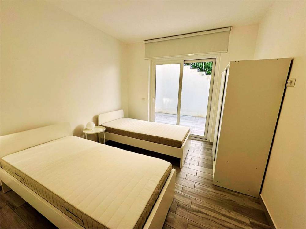 L'immobile si trova al piano terra e dispone di un giardino privato, ideale per trascorrere momenti di relax all'aperto. Internamente è composto da salone con angolo cottura, due camere da letto e due bagni.