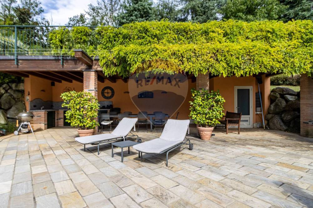 La proprietà si apre su un ampio ingresso che conduce alla luminosa zona living, impreziosita da un elegante camino e da grandi vetrate che si affacciano sul patio esterno, ideale per momenti di relax. Da qui si accede direttamente alla zona piscina di proprietà di 4 m x 8 m, a sfioro con acqua cristallina, ideale per rilassarsi e nuotare, circondata dallarea solarium, valorizzata da un importante berso coperto in legno e muratura con cucina in muratura e bbq e bagno di servizio, perfetto per pranzi e cene e vivere appieno gli spazi esterni in ogni stagione, il tutto immerso in unoasi verde di circa 2000 mq.