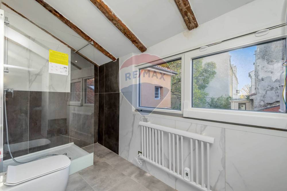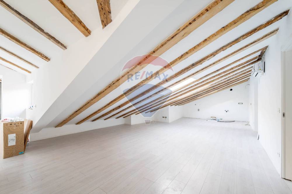 Le parti comuni dello stabile sono state valorizzate con cura: il tetto è stato coibentato (15 cm di lana di roccia) e il vano scale è stato appena ristrutturato, conferendo eleganza e valore aggiunto al contesto.