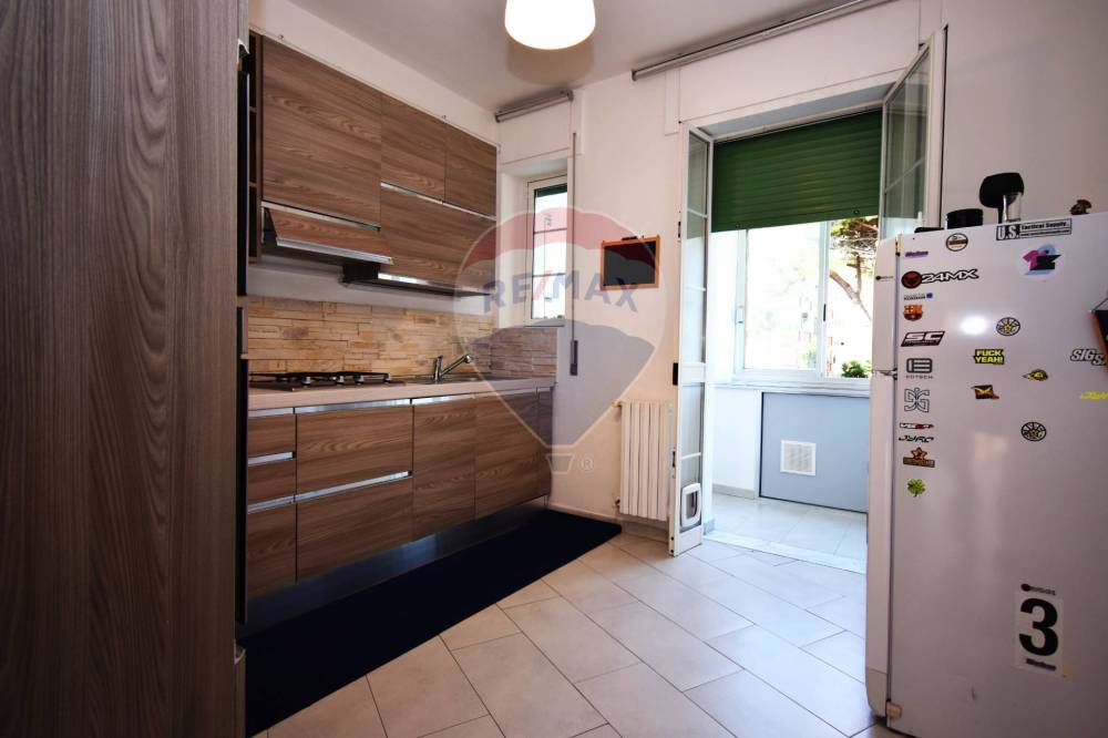 La cucina abitabile si apre su una veranda con vista sul verde, perfetta per la lavanderia e per stendere i panni all'aria e non limitati dall'uso della sola asciugatrice.