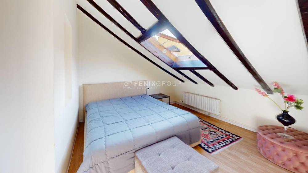 L’appartamento è luminoso e molto silenzioso, grazie ai numerosi lucernari e alla posizione interna. Gli ambienti sono distribuiti in modo funzionale e offrono un’atmosfera calda e accogliente.