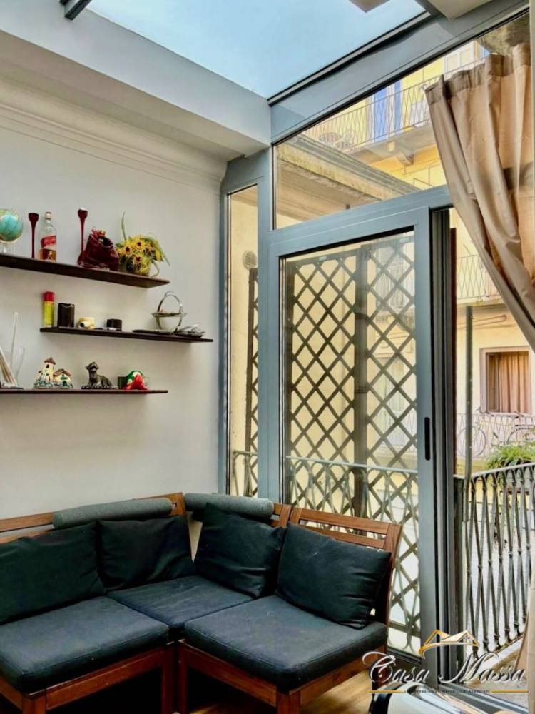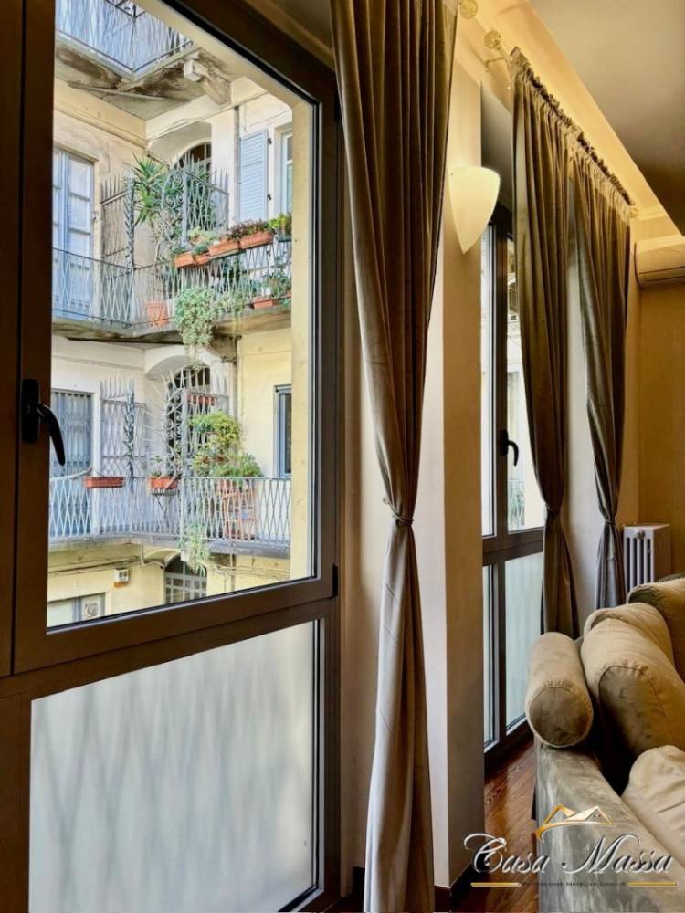 Via San Quintino nell'isolato compreso tra Corso Galileo Ferraris e Via Bellini in stabile d'epoca risalente all'ultimo ventennio del 1800, proponiamo unità immobiliare composta da doppi ingressi, ampia sala, cucina, sala da pranzo, due camere da letto, studio, tripli servizi, completata da un ampio box auto posto nella corte interna e cantina. L'appartamento, oggetto di un generale intervento di riqualificazione risalente al 2015 si presenta in ottimo stato di manutenzione. Derivante dalla fusione di due unità, si sviluppa al piano primo nel corpo di fabbrica eretto sull'interno corte. Il progetto di ristrutturazione ha permesso di offrici una ridistribuzione degli spazi interni di assoluto carattere, con una chiara suddivisione delle zone ed un altissimo livello di fruibilità degli ambienti. L'ingresso principale, dal vano scala servente soltanto due unità abitative, si apre in una ampia sala, con pavimentazione in parquet in ciliegio, risalente all'epoca di costruzione ed un grande camino; un cameretta adibita a studio, un vano servizio oltre la cucina, attigua alla sala da pranzo, realizzata nell'elegante ed originale struttura a veranda, completano la zona giorno, che si disimpegna, attraverso un grande distributivo, che concede l'acceso ad un ulteriore bagno di servizio, dall'area notte, costituita da due camere da letto, una delle quali divisibile e dotata di un servizio privato oltre ad un accesso secondario ad altro vano scala condominiale. Degna di nota l'attenzione al recupero conservativo delle volte affrescate, che ci regalano un giusto connubio tra la contemporaneità delle ampie vetrate, delle linee essenziali degli elementi in muratura e l'epoca di costruzione, che si mostra fiera, invariata nel corso degli anni, in ogni elemento architettonico, come il bow window posto ad impreziosire il vano scala. Completo di impianto di antifurto e climatizzazione, ha pavimentazioni in parquet e gress, corpi riscaldanti in acciaio tubolare ed è dotato di impianto di riscaldamento autonomo, che contribuisce a ridurre le spese di gestione già decisamente contenute. Completano la proprietà un vano ad uso cantina ed un box auto con accesso automatizzato, elemento di davvero non facile reperibilità - Maggiori Dettagli: Cassaforte, Camino