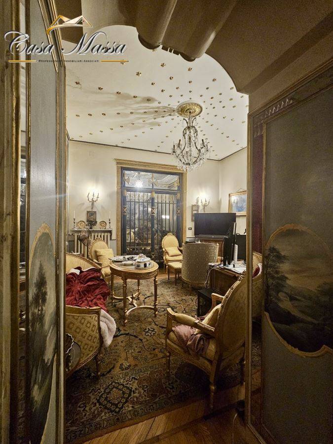 In un elegante stabile d'epoca, proponiamo prestigioso appartamento di ampia metratura. Frazionabile e dotato di doppi ingressi presenta caratteristiche di difficile reperibilità. Il complesso in eccellente stato manutentivo e servito da portierato venne edificato alla fine degli anni venti del secolo scorso, nell'epoca del tardo liberty che influenzava and quot;una Torino and quot; già avvolta nel mistero, contribuendo ad essere considerata la città esoterica per eccellenza in Italia. Fu in quel contesto che la proprietà oggetto di vendita prese forma anche grazie alla personalità di un personaggio iconico di quell'epoca, che la volle propria nel 1930 per l'incantevole affaccio, che ora come allora, si gode dal quarto piano sul Parco del Valentino. Entrando nella proprietà è impossibile non respirare un'area di sontuosa eleganza, di costante ricerca del prezioso, manifestata dai pregiati pavimenti in marmo e parquet, dagli innumerevoli decori e fregi in gesso fino ai soffitti affrescati. Sebbene oggetto di interventi negli anni a venire, l'immobile conserva ancora oggi, ogni elemento distintivo dell'epoca di costruzione, regalandoci un bene unico. Indiscutibile fiore all'occhiello l'ampio sviluppo e la tripla esposizione che ci offrono un bene dotato di un altissimo livello di luminosità, costituito da camere di ampia metratura che si susseguono di salone in salone (ben tre nell'immobile) distribuendo in maniera razionale gli spazi di cucina, sala da pranzo, quattro camere, tripli servizi, disimpegnate dagli ingressi di rappresentanza e da un corridoio, dal quale si può accedere ad un livello superiore (quinto) dove è presente un'ulteriore camera con servizio privato rivolta ad un piccolo terrazzo panoramico, una delle sei aree scoperte che completano la casa. - Maggiori Dettagli: Porta blindata, Camino, Videosorveglianza