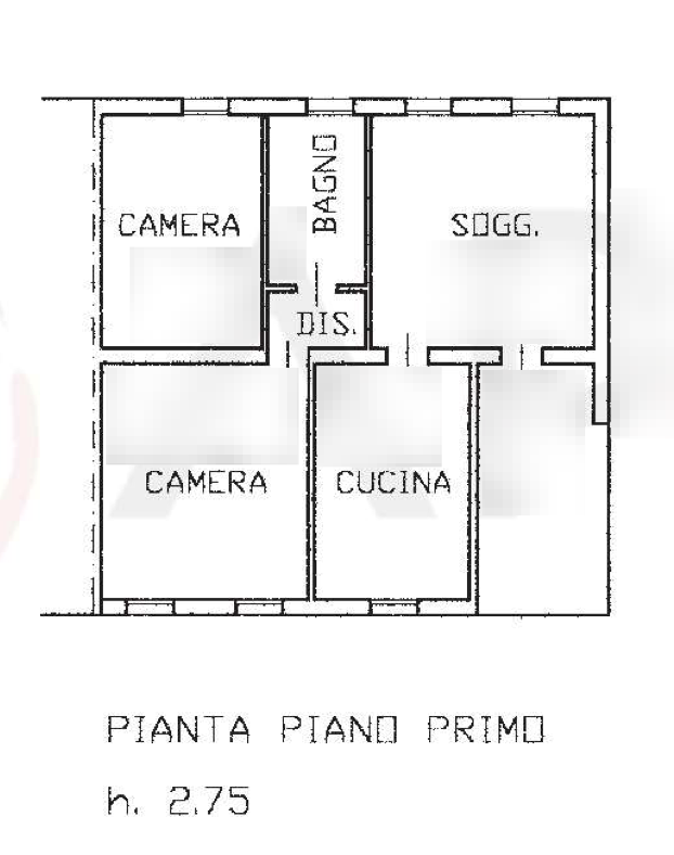 Appartamento al piano primo facente parte del fabbricato in linea situato in Comune di Camposampiero (PD) in via Corso, composto da un ingresso, due camere, una cucina, un soggiorno, bagno e disimpegno.