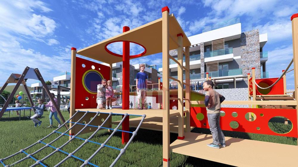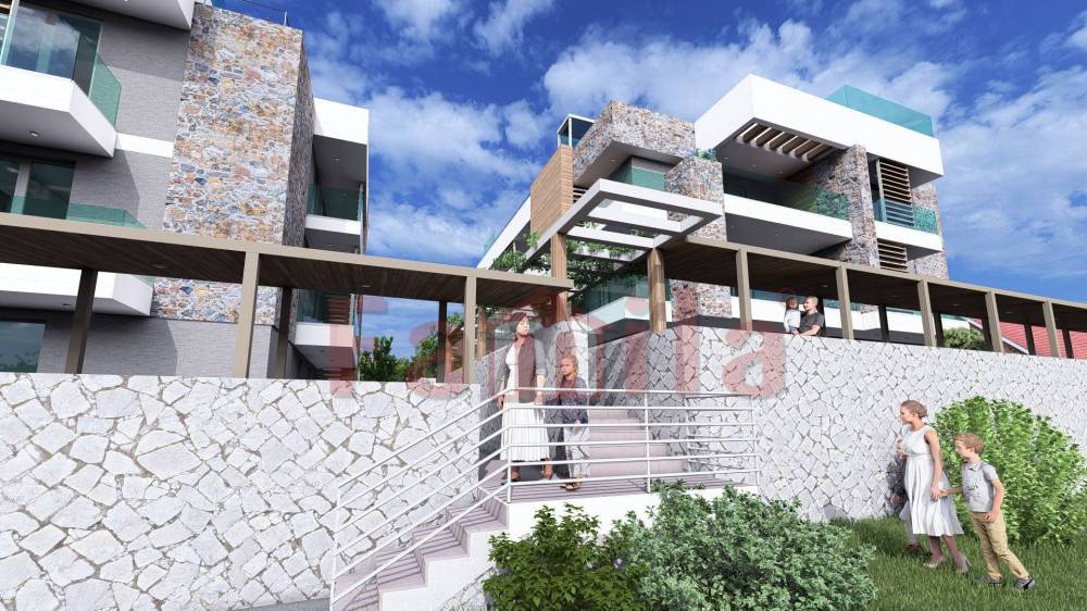 Gli appartamenti al piano terra sono composti da soggiorno/cucina, camera matrimoniale, due camerette e due accessori, con circa 176 mq di spazio esterno tra giardino e terrazzo, box auto di 30 mq e cantinola di 14 mq.