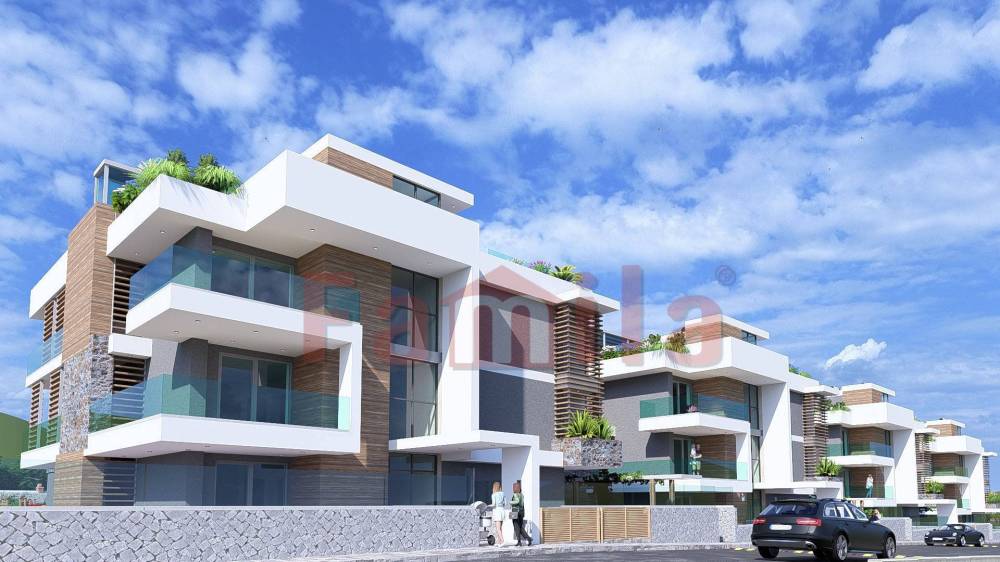 Gli appartamenti al primo piano sono composti da soggiorno/cucina, camera matrimoniale, due camerette e due accessori, con circa 45mq di terrazzo, box auto di 20 mq e cantinola di 10 mq.