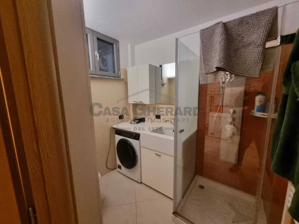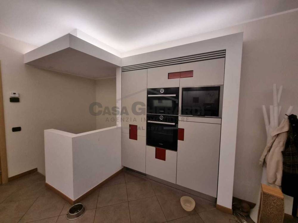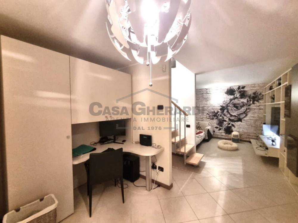 BILOCALE CON TAVERNA E GIARDINO Ponte San Pietro centralissimo e moderno appartamento bilocale in contesto signorile. L'appartamento è composto da ingresso soggiorno con cucina a vista, uscita su giardinetto privato, camera matrimoniale con angolo studio e uscita su altra porzione di giardinetto, bagno ampio con vasca idromassaggio. Da comoda scala interni si accede al piano seminterrato dove troviamo grande taverna, locale lavanderia completo di wc e doccia, comoda intercapedine utilizzabile come cantina, accesso diretto al box singolo ma di generose dimensioni. L'immobile ha il riscaldamento autonomo a pavimento. Nel prezzo è compreso tutto l'arredo esistente di ottima qualità e design. Per le visite potete contattarci direttamente tramite WhatsApp al 334/31.31.229 oppure al fisso allo 035/46.15.15