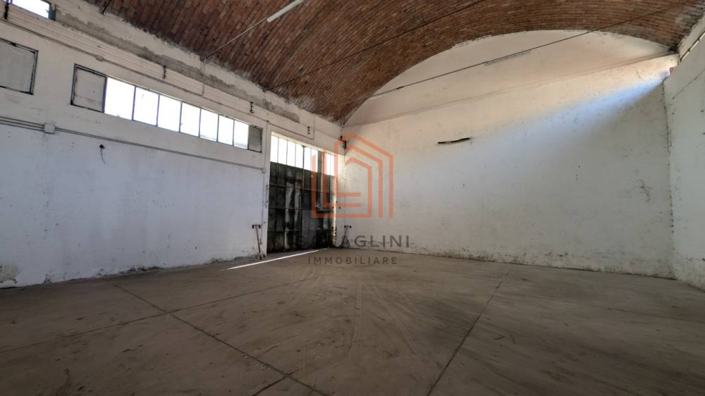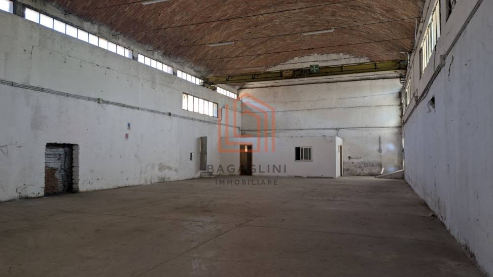 Area produttiva principale di circa 400 mq, con altezza interna di 8,50 m, copertura a volta e carroponte installato, ideale per attività di produzione, carpenteria, officina meccanica, lavorazioni industriali o deposito merci;