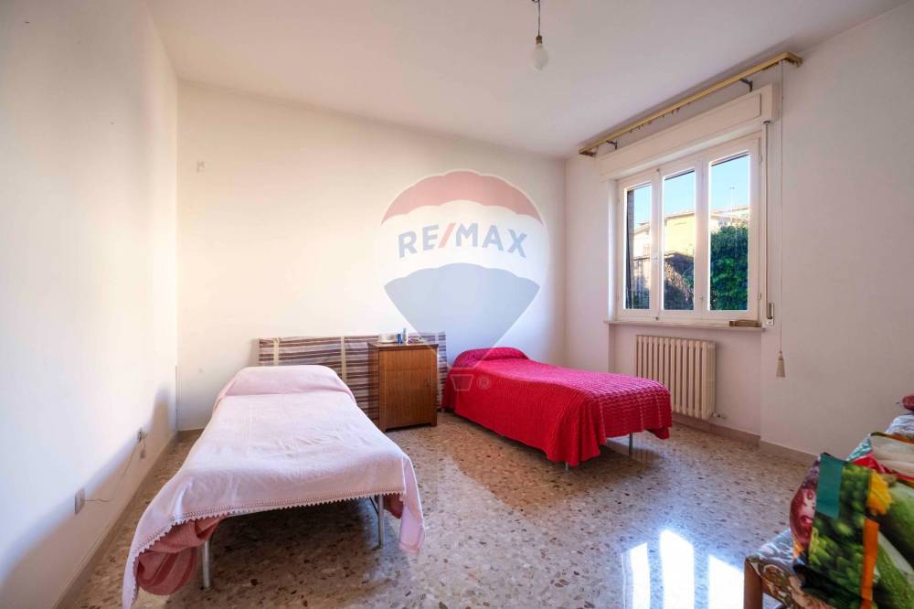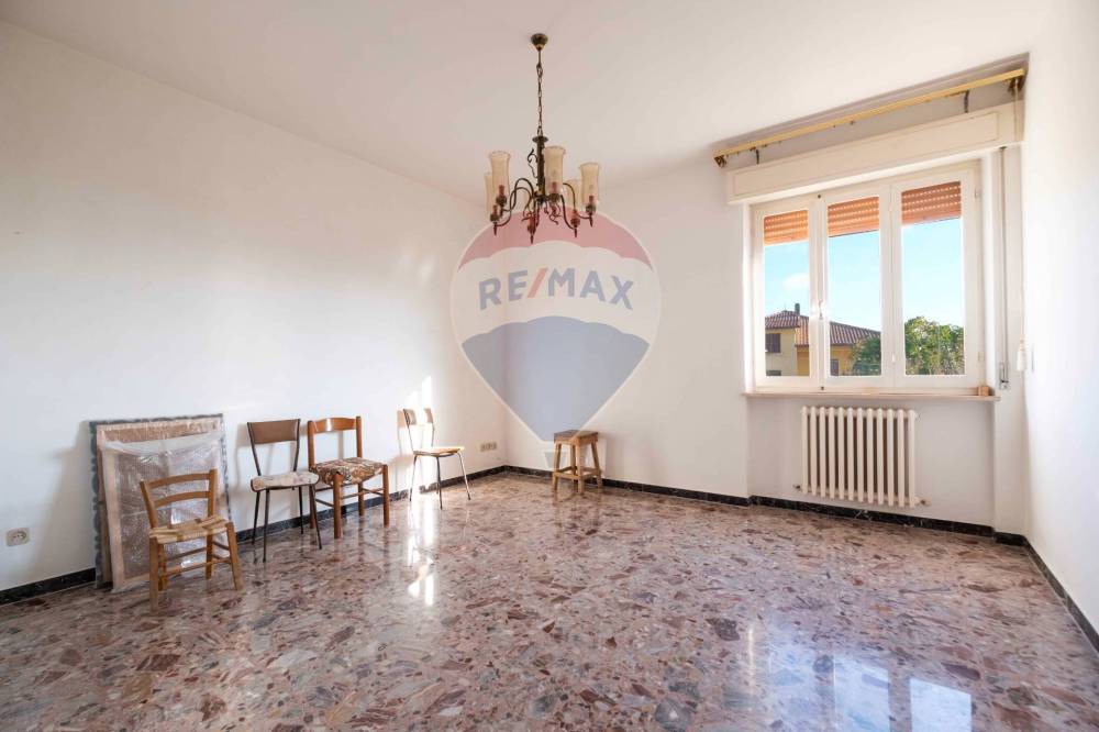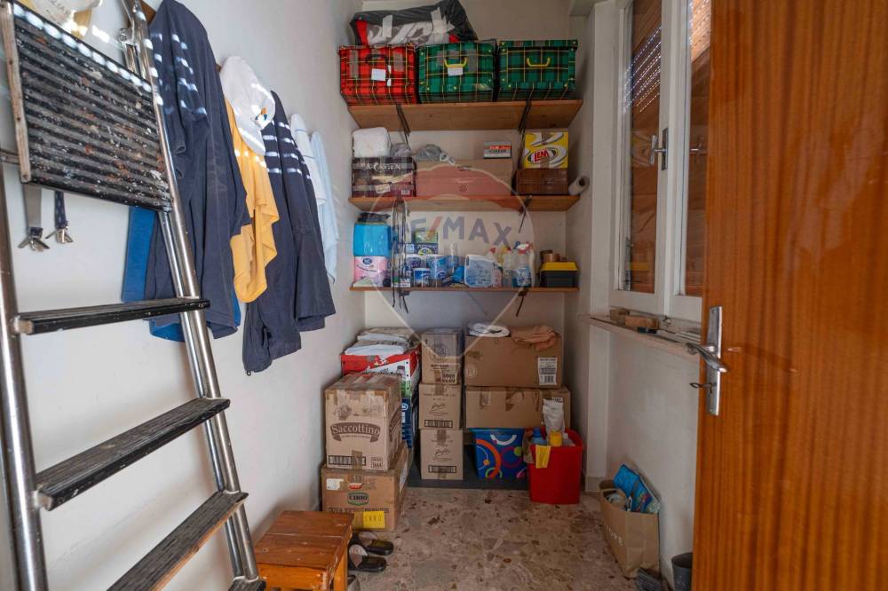 L'appartamento ci accoglie con un disimpegno illuminato a lato da un balcone.Si suddivide poi in zona living con cucina e sala,un ripostiglio,tre camere di grande metratura e un bagno.