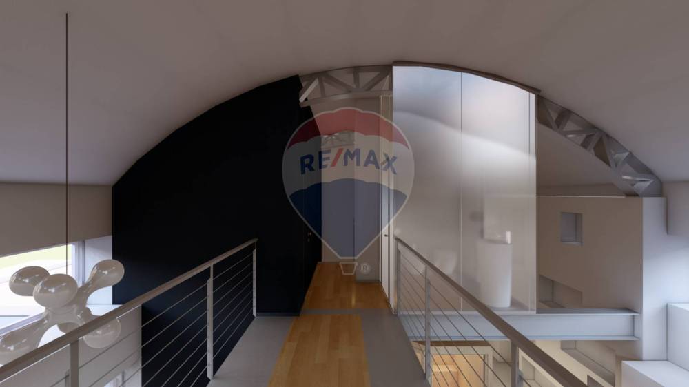 Si accede al piano primo mediante una scenografica scala interna affacciata sullo spazio a doppia altezza. Al piano primo vi sono una camera matrimoniale, una camera singola e un bagno.