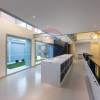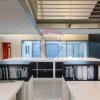 Ledificio si sviluppa su due piani con un ampio spazio a doppia altezza con vetrate a entrambi i livelli.
