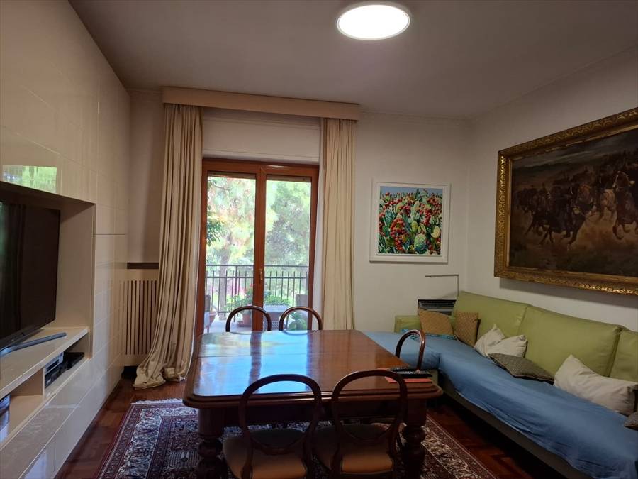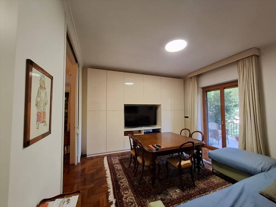 L'immobile si compone di: ingresso. soggiorno con ampio balcone, sala da pranzo con altro balcone, cucina abitabile con balcone anch'essa, disimpegno che divide zona giorno dalla zona notte, due spaziose camere da letto e doppi servizi.