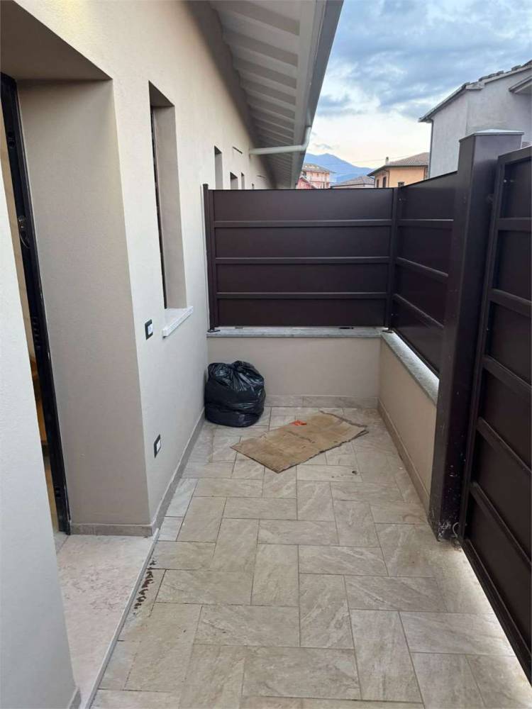La soluzione, con ingresso indipendente, è dotata di ogni comfort: riscaldamento a pavimento, aria condizionata, grate, finestre in doppio vetro PVC, predisposizione all'antifurto.