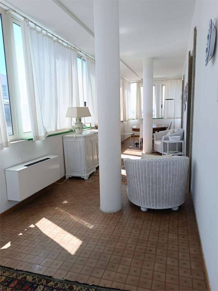 ZONA GIORNO: ingresso nell'ampio disimpegno con finestra, corridoio, salone doppio con camino e ingresso sul terrazzo a livello, tinello con angolo cottura con vano lavanderia con accesso sulla veranda esterna (condonata).