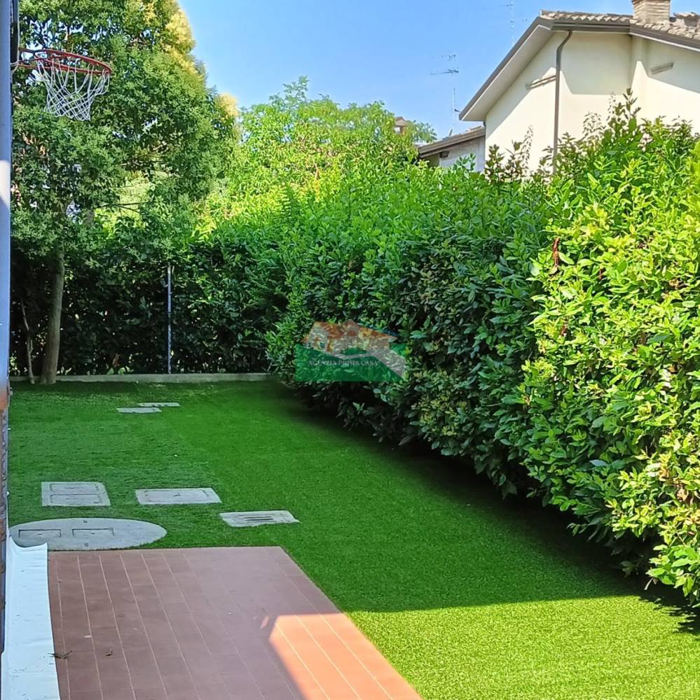 PONTE NUOVO - In zona residenziale circondato dal verde, lontano dal caos cittadino, ma a pochi minuti dalle comodità urbane, dalle spiagge, dai siti patrimonio UNESCO e da attrazioni come Mirabilandia. Questa elegante proprietà, curata in ogni dettaglio, ti accoglie con i suoi ampi spazi, pensati per offrire un rifugio di relax e la massima funzionalità per te e la tua famiglia.L'accesso alla casa avviene tramite uno stradello privato su strada senza uscita, con ampio parcheggio gratuito (anche per disabili) che può ospitare una ventina di auto, oltre a una zona verde pubblica e un’area sgambamento cani recintata. Se preferisci parcheggiare all'interno della proprietà, puoi utilizzare il cancello carrabile e, secondo le registrazioni catastali, è possibile parcheggiare fino a due auto. Il giardino privato, di circa 100 mq, è completamente recintato e adornato da una siepe lungo tutto il perimetro ed erba sintetica, offrendo una piacevole area verde a bassa manutenzione per il relax, cene all'aperto o per far giocare i bambini in sicurezza. Un vero angolo di tranquillità, immerso nella natura e accompagnato dal cinguettio degli uccelli. Se poi hai un amico a 4 zampe, questo è il posto per lui! (per animali di piccola taglia c'è anche una recinzione addizionale a maglie molto fini per evitare che possano infilarsi tra le grate del cancello! Oltre al giardino, una zona pavimentata in cotto con pannelli separè in legno garantisce la massima privacy, mentre un sottoscala tamponato con copertura in nylon totalmente avvolgibile offre ampio spazio per riporre bici, moto, mobili da esterno e attrezzi da giardino, al riparo dalle intemperie. Al piano terra, la zona giorno con angolo cottura è perfetta per organizzare momenti di svago in compagnia. La camera, spaziosa, può essere trasformata in una sala giochi, un ufficio o una palestra casalinga, adattandosi alle tue esigenze. Salendo al primo piano, l’ingresso principale conduce su una grande terrazza interamente coperta, riparata da due ampie tende da sole, ideale per pranzi e cene all'aperto durante quasi tutto l’anno. Un pratico sgabuzzino sgombraroba di generose dimensioni aggiunge ulteriore funzionalità. Questo piano, interamente rifinito in parquet (eccetto il bagno), ospita un ampio soggiorno con cucina a vista e una zona pranzo modulabile, capace di ospitare comodamente fino a 12-14 persone. Perfetto per ospitare famiglia e amici in uno spazio accogliente e luminoso. La zona notte si sviluppa attraverso un disimpegno e ospita due camere doppie, i cui spazi sono stati ottimizzati grazie ad armadiature incassate nella parete, e un secondo ampio bagno. Tra il 2023 e il 2024, la casa ha ricevuto importanti interventi di rinnovo: ritinteggiatura con antimuffa/anticondensa, rifacimento del vano doccia del bagno principale, installazione di un moderno sistema di aria condizionata dual split per garantirti un comfort ideale in ogni stagione, oltre alla levigatura del parquet nella zona giorno e al rinnovo delle porte in legno di ingresso e dello sgombraroba. Con dettagli come aria condizionata, riscaldamento autonomo, zanzariere, connessione ethernet e satellite, e un sistema di videosorveglianza esterna, questa casa è pronta per offrirti la massima comodità e sicurezza, senza alcuna spesa condominiale. Se cerchi una casa che unisca comfort, privacy e vicinanza ai principali punti di interesse, questa proprietà è la scelta perfetta ed è pronta per accogliere la tua famiglia