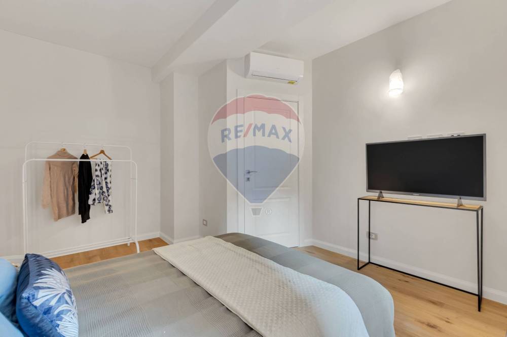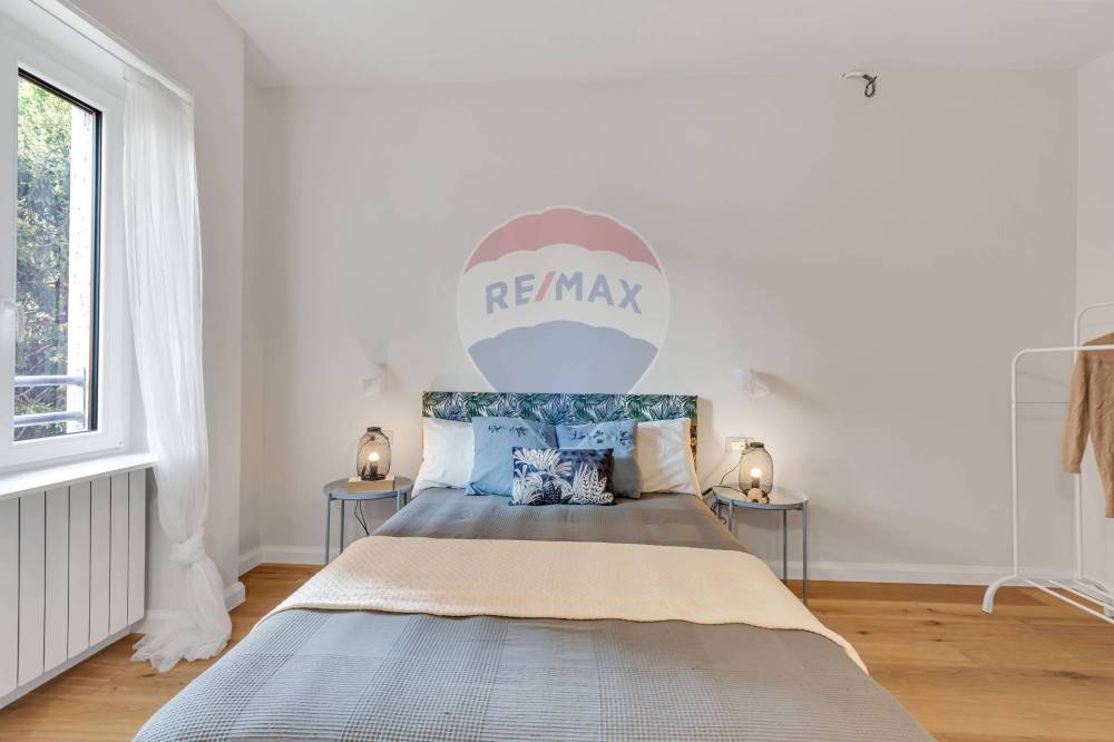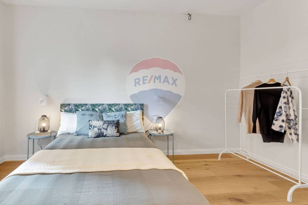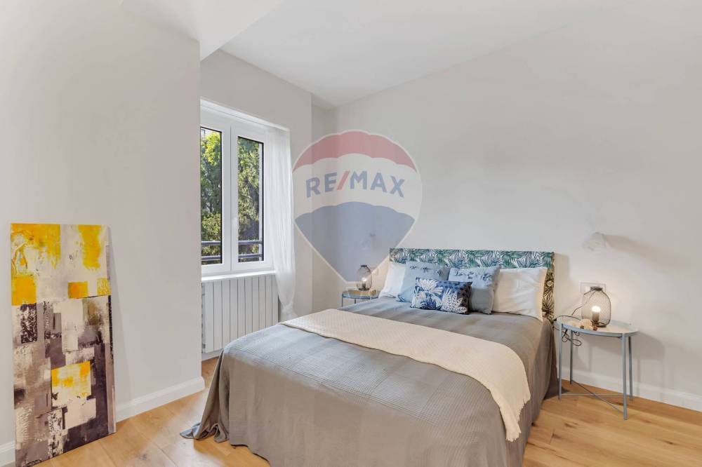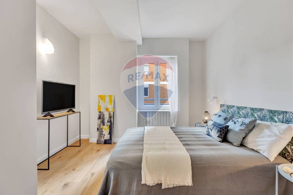 La camera da letto ha una comoda cabina armadio, mentre il bagno arredato è chic, curato in ogni dettaglio.